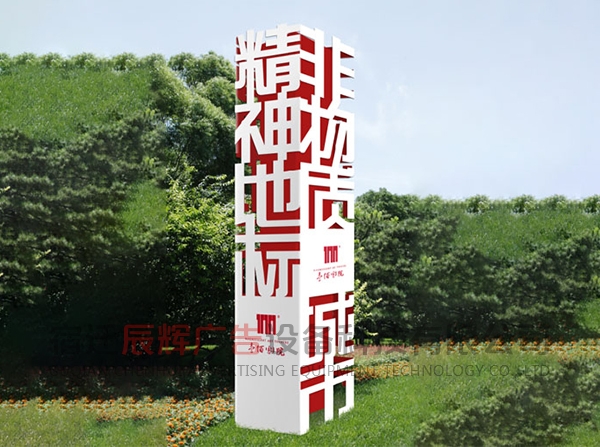 精神堡壘具備一定的體量和高度,能夠獨立表達企業(yè)形象的大型單體標識。精神堡壘特指為商業(yè)體、主題園區(qū)、交通站點等公共場所,樹立醒目且符合場地氣質(zhì)的藝術(shù)構(gòu)筑物。精神堡壘的擺放的位置也尤其重要,人都有視覺盲點,精神堡壘給人一種清新和諧的感覺。